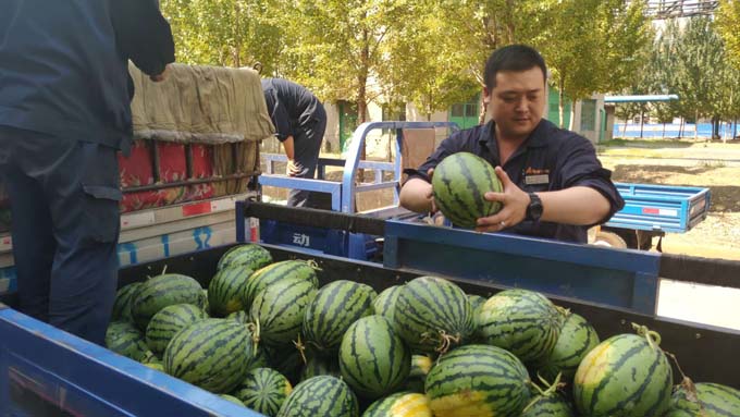 厂房里,公司工会为奋战在一线的职工发放清凉解署的盐汽气和西瓜,给大家送去一份夏日的清凉。工会主席叮嘱职工要注意生产安全,合理安排作息时间,做好防暑降温工作。