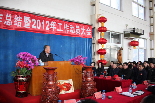 正月初七,公司在网球场召开每年一度的全体员工大会,总经理张铁汉在会上做2011年工作总结暨2012年工作规划。董事长在会上做重要讲话。