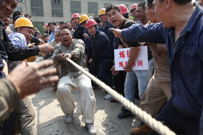 5月18日,公司工会有办公楼前举办职工第二届拔河比赛。公司各部门以车间为单位共有23个代表队参加比赛,经过激烈的角逐,轧钢厂成品车间一举夺魁。炼铁厂炼铁车间、烧结厂球团车间、炼铁厂热工车间、汽车队、烧结厂维护车间依次获得2-6名。
