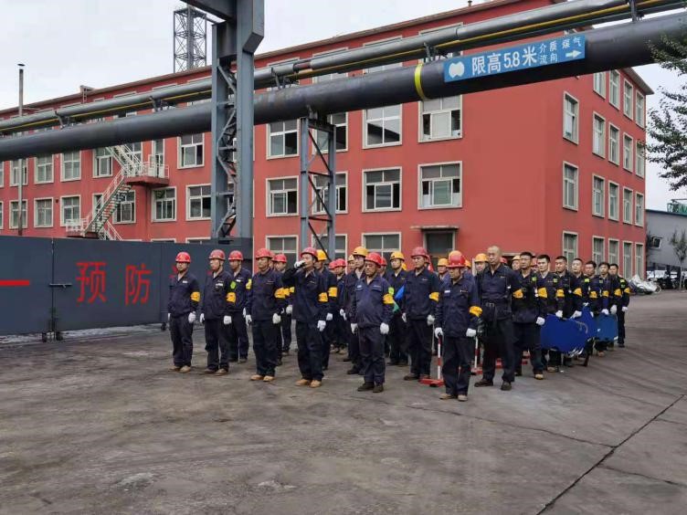“报告马厂长:我是当班维护班长曹雷,9点35分左右班内三名员工在煤气阀组平台巡检过程中发生煤气中毒事故,请求立即支援”……;“请抢险救援组、安全警戒组、医疗救护组…立即赶赴事故现场集结”;“报告总指挥:抢险救援组10人到达现场,6套呼吸器及3副担架救援装备完好,可正常使用”……;“各救援小组按预案规定程序及商定的实施方案,立即展开救援行动”……;“报告总指挥:三名伤者已成功救出,两人中毒较重,一人较轻,……”;“报告总指挥:煤气泄漏部位抢修完毕,已无泄漏现象,设备可正常运行”……。随着一条条救援指令的下达,现场警戒、现场救援、伤员急救、设备抢修、现场清理及组织生产恢复等过程紧张、有序地完成,实战演练圆满结束。